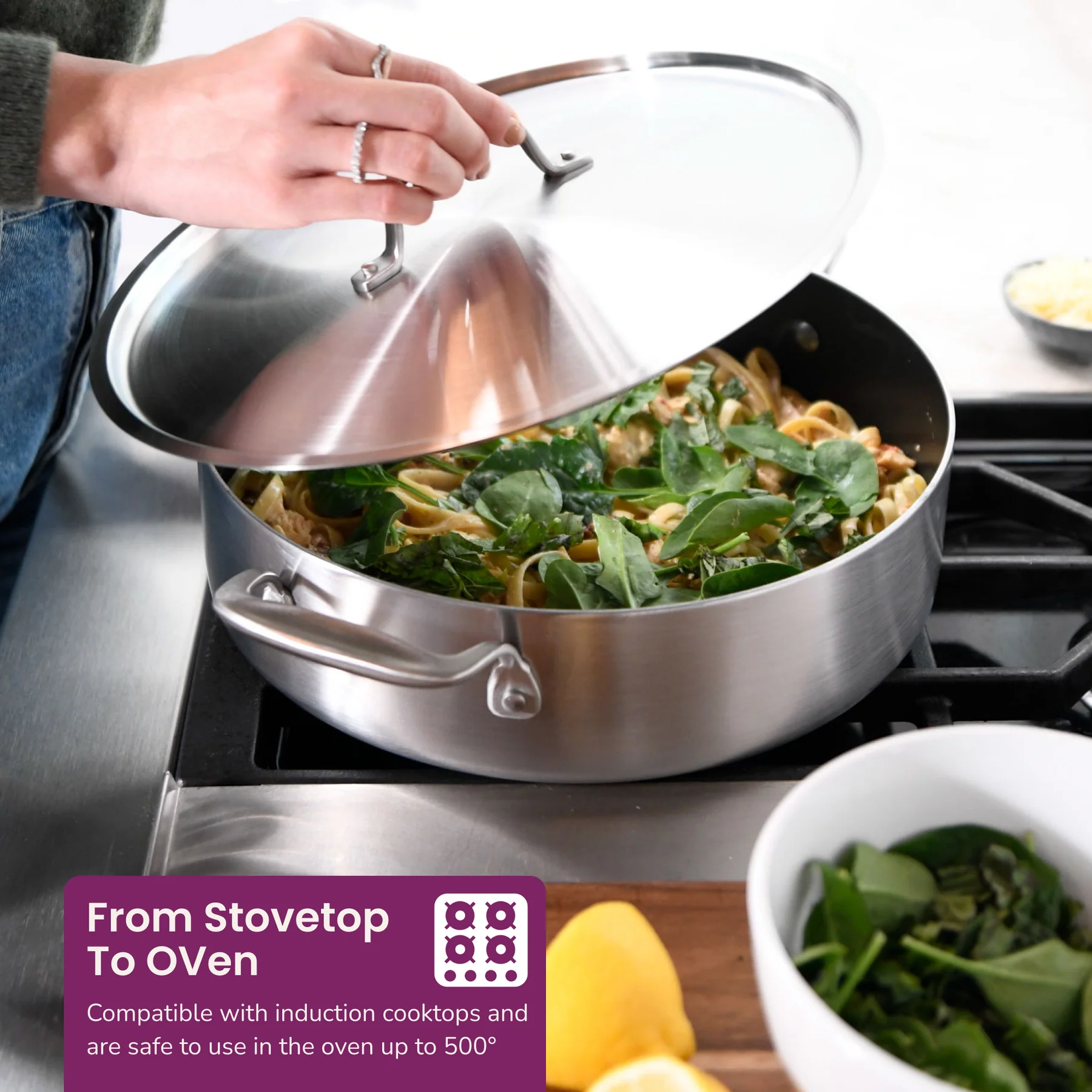 Performance Handles: Our stainless steel handles are built for performance. They stay cool when you’re cooking on the stove and are ergonomically designed for maximum comfort and efficiency.