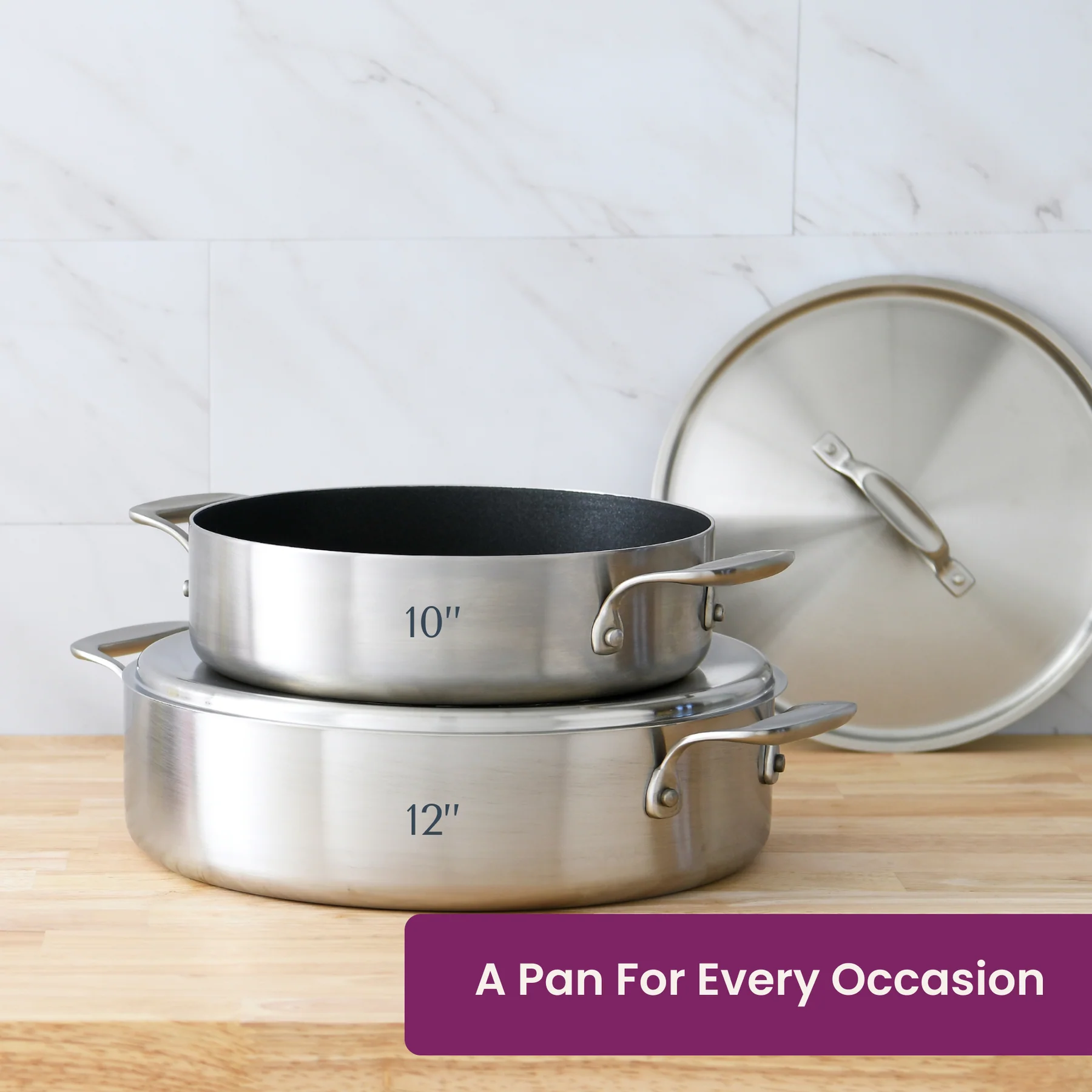 Superior Heat Conductivity: Two layers of professional-grade stainless steel is wrapped around a layer of super durable aluminum to make our tri-ply stainless steel. That means your pans will heat evenly and stay hot every time.